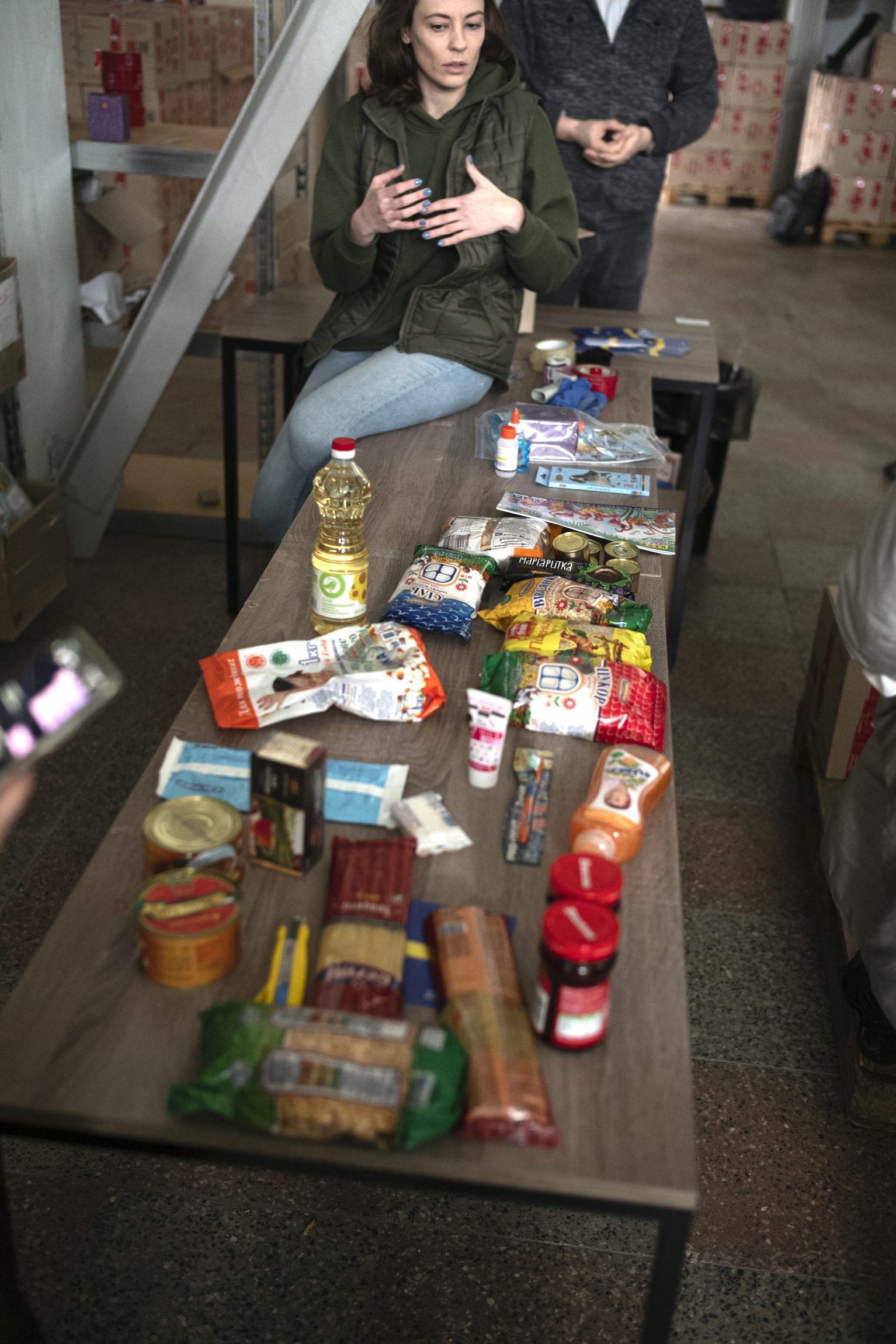”Vi skal til at sende vores kasser med fødevare, hygiejneprodukter og tegneredskaber til børn afsted. Vi sender 800 af den slags pakker afsted i morgen,” siger Oleksandra Sazhyna. Hun er indkøbsleder i Dobrodiy Club, der er støttet af Folkekirkens Nødhjælp.