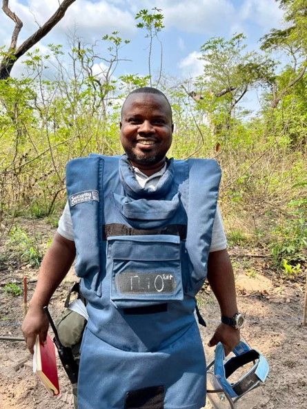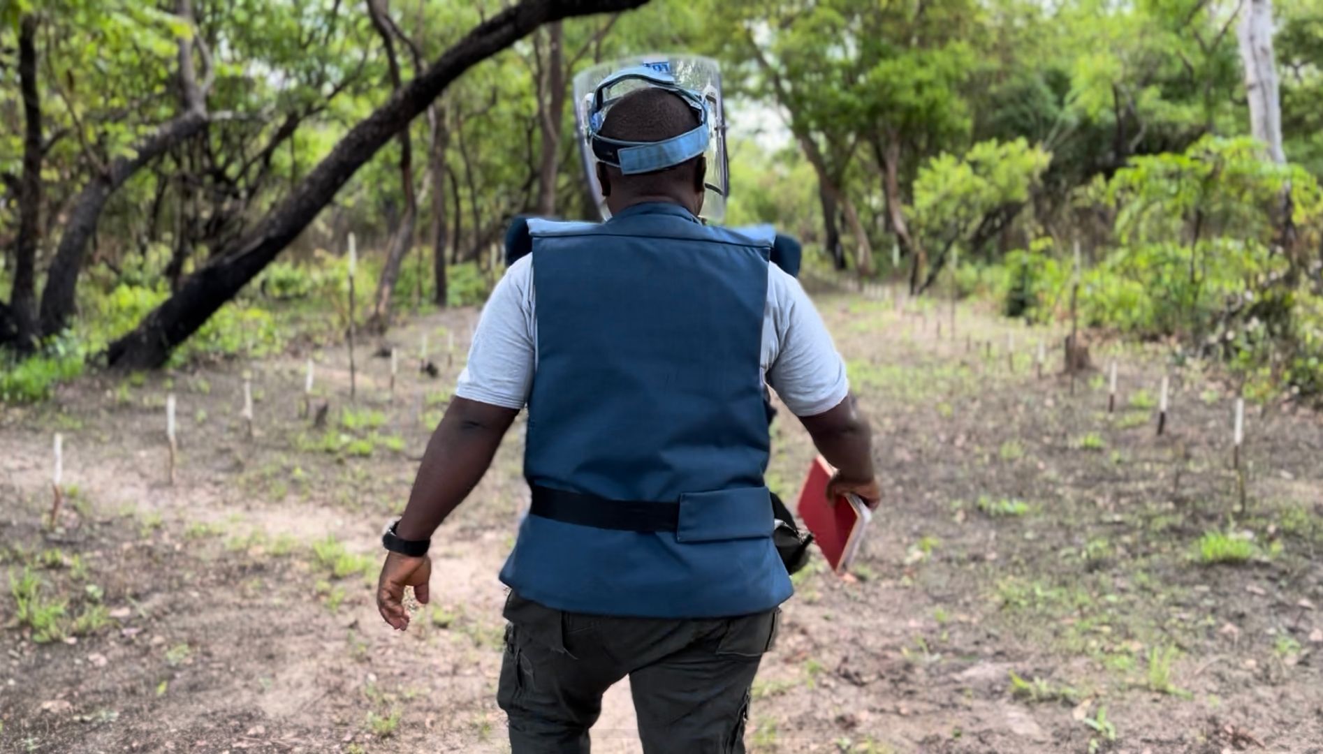 Det er formiddag og temperaturen i Den Demokratiske Republik Congo har allerede bevæget sig op over 30 grader. I udkanten af en lille landsby i Tanganyika-provinsen, et par hundrede meter fra Congo-floden, arbejder et hold på 24 mineryddere sig omhyggeligt gennem blade, buske og træer, mens insekter sværmer om hovederne på dem i varmen. Arbejdet går langsomt. For med risiko for at finde en eksplosiv genstand i jorden blot et par centimeter væk kan forsigtighed være forskellen mellem liv og død.