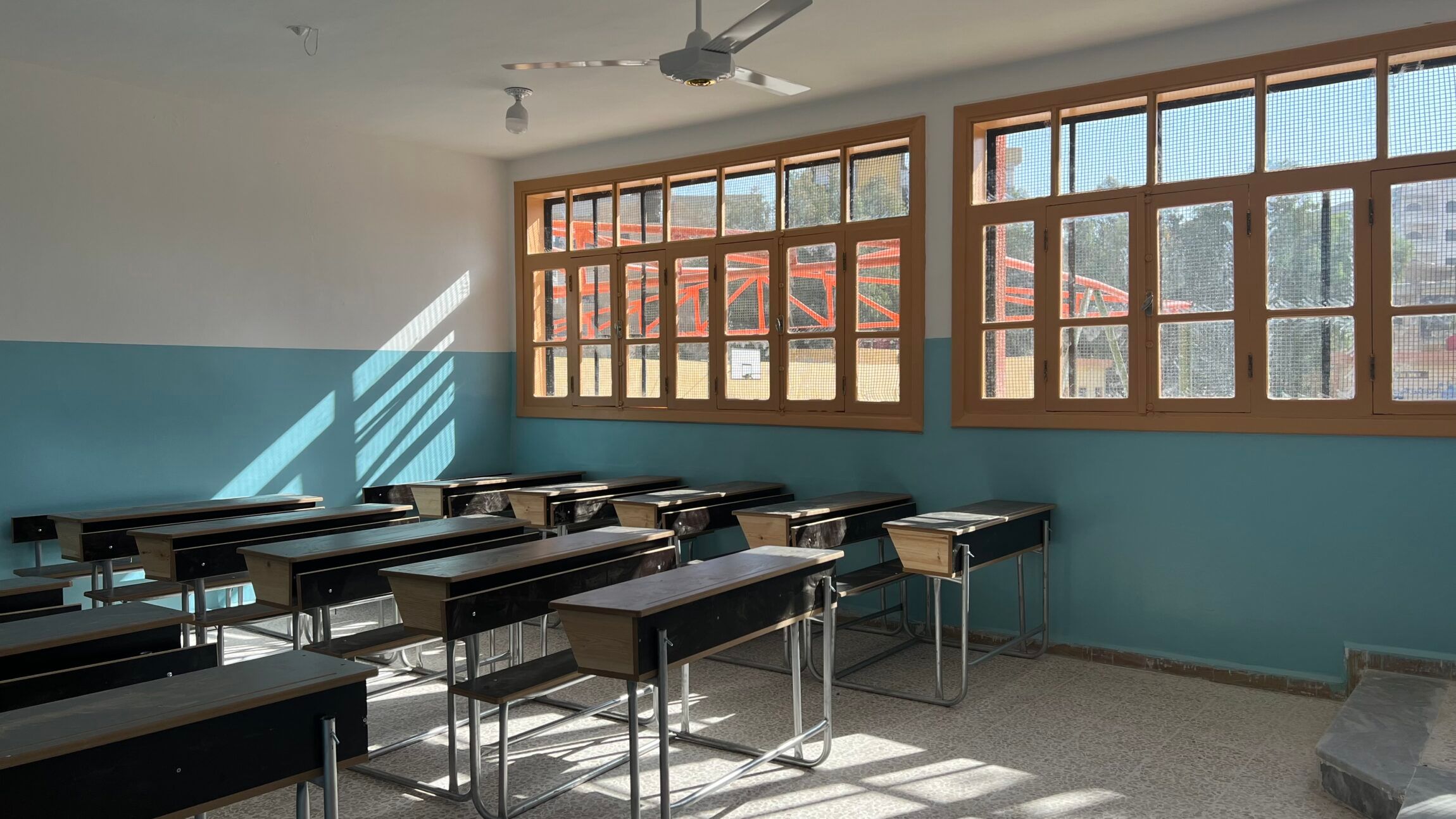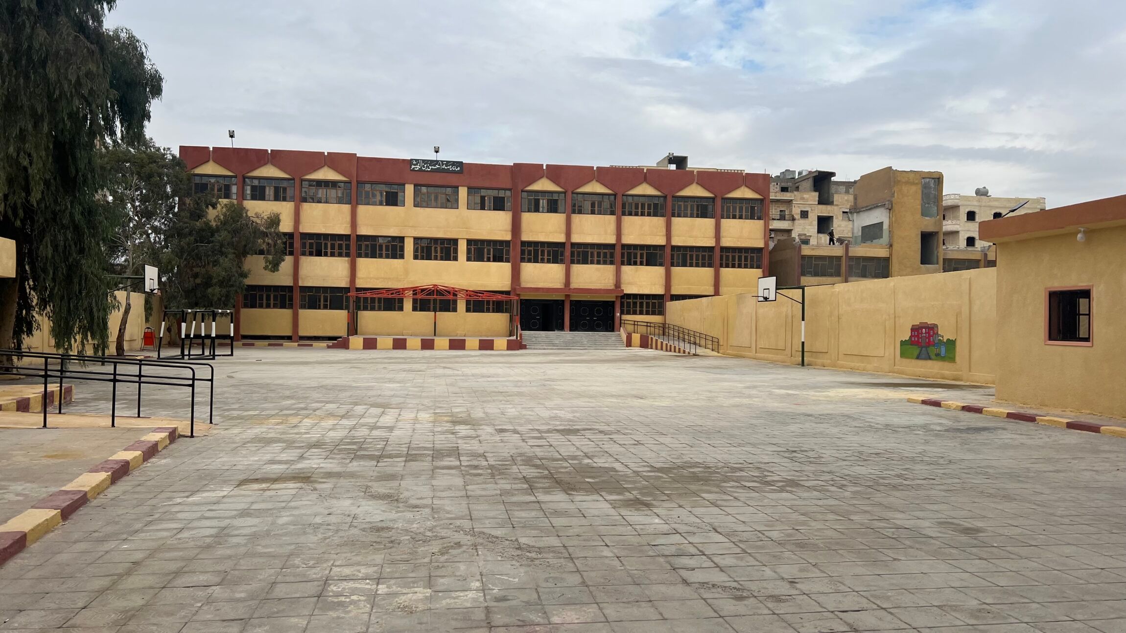 Denne skole i Raqqa var fuldstændig ødelagt efter 12 års borgerkrig. Nu kan flere end 300 elever igen gå i skole. Vi genopbygger skolerne med handicapvenlige løsninger, så de mange børn med fysiske skader fra krigen også kan komme i skole.