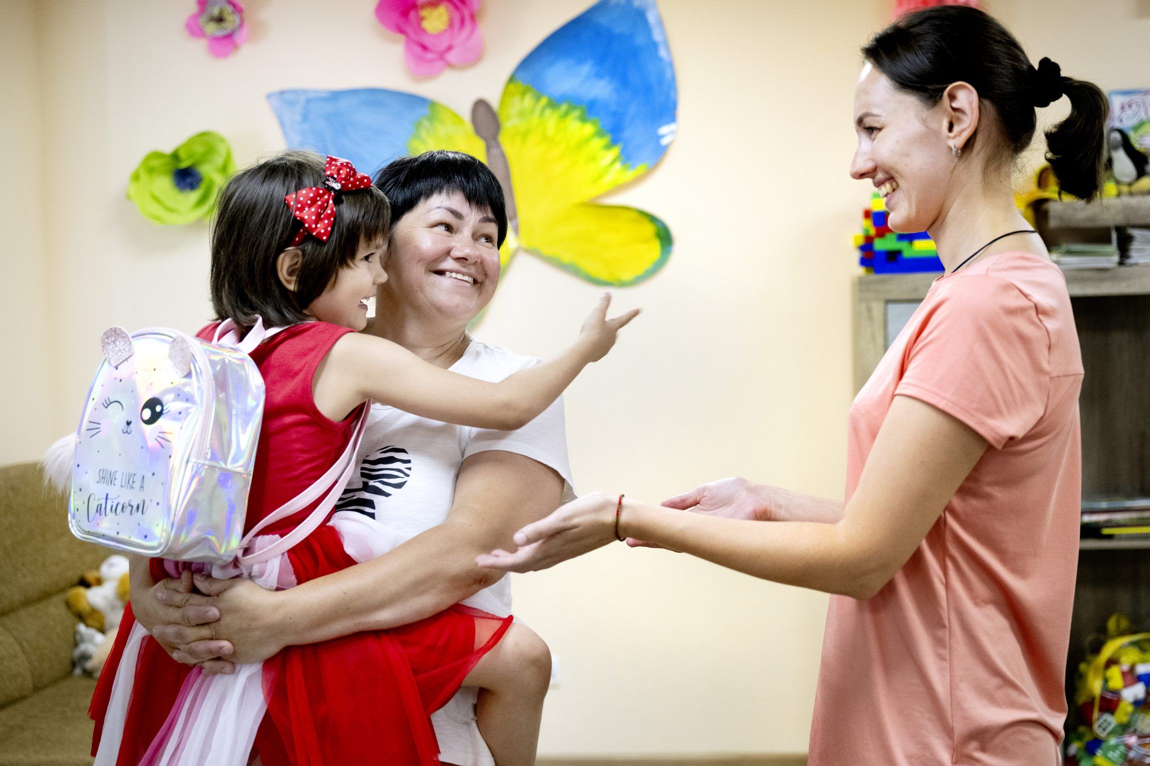 Fem-årige Mira har fået mulighed for at komme i børnehave, og det kan man tydeligt mærke på hendes humør. Hun bor 40 km fra frontlinjen, hvor bombardementer og luftalarmer er blevet en del af hverdagen. Mød Mira og hendes familie, der inviterede Folkekirkens Nødhjælp ind i deres hjem og med i børnehave.