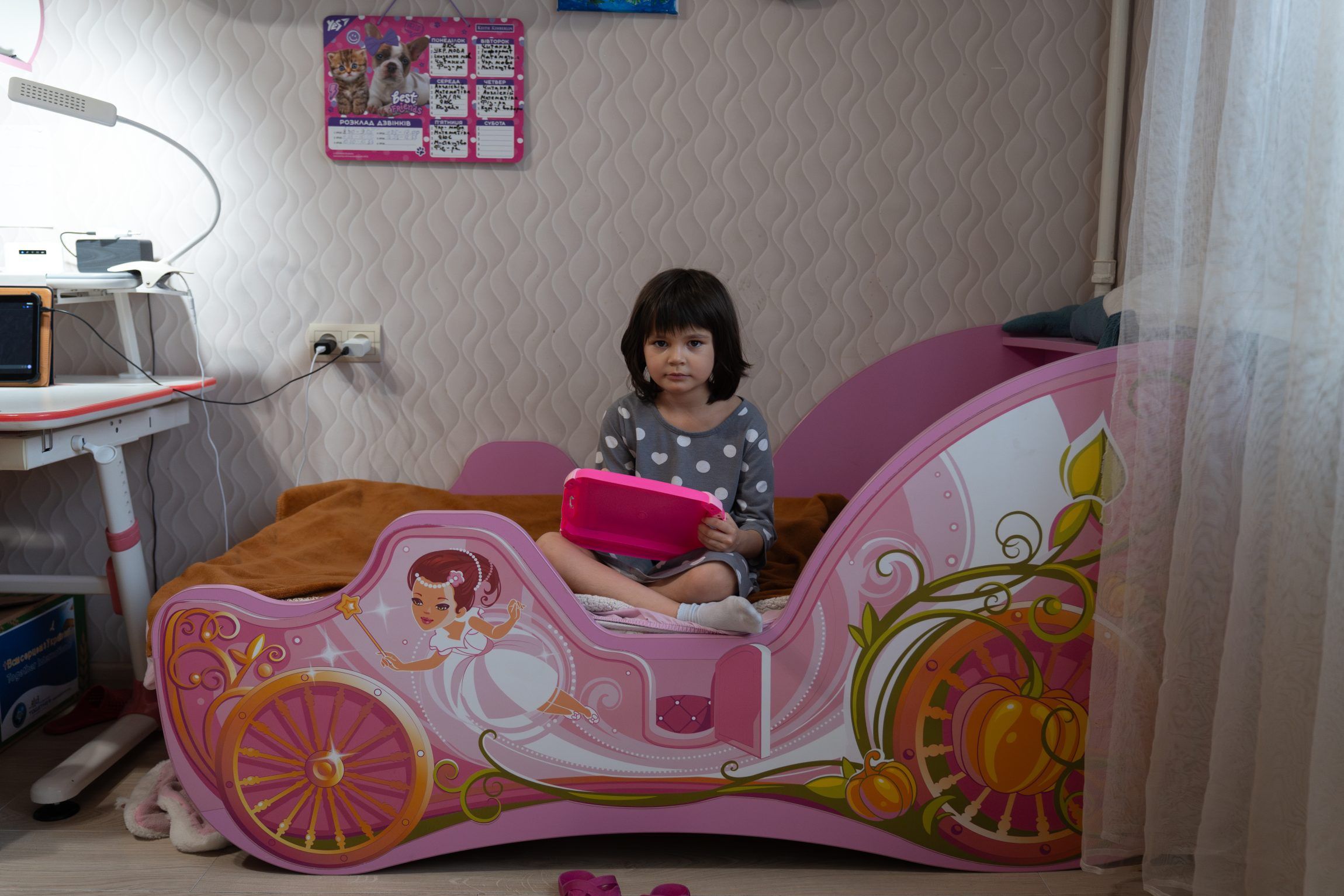 ”Mira reagerer meget voldsomt på sirenerne. Hun har mange traumer fra krigen, som kommer op til overfladen, når vi hører et højt brag eller sirener. Men i børnehaven er hun en helt anden. Hun reagerer næsten ikke, fordi hun er omgivet af andre børn og pædagoger.”