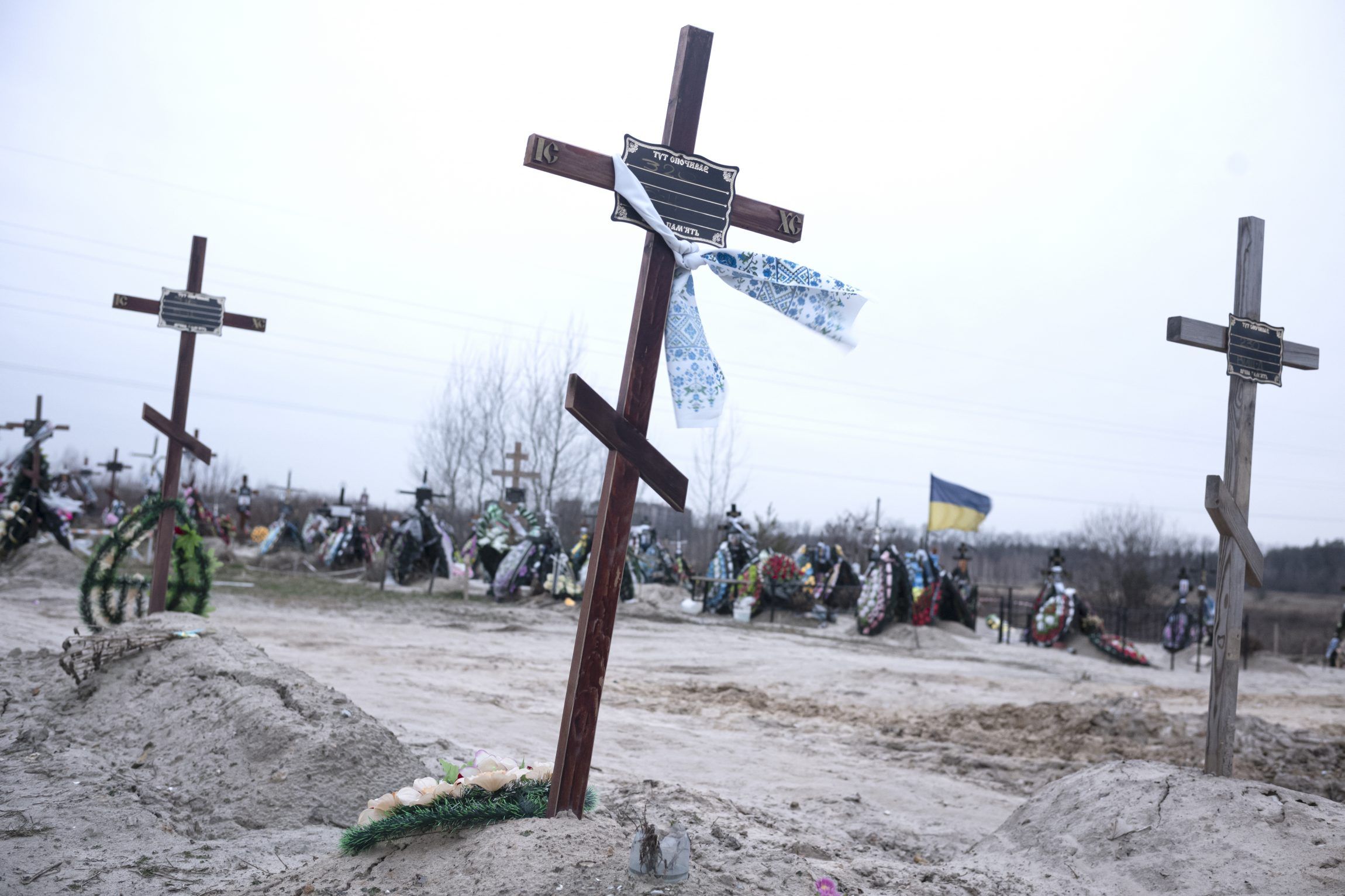 20-årige Vadim Jevdokimenko står foroverbøjet ved sin fars gravsted. ’Nummer 320’ står der på et lille skilt, men Vadim er sikker på, at det er hans far, der ligger under jordbunken. Omkring Vadim er der hundredvis af andre gravsteder. De fleste er hurtigt opført, hvor blomsterkranse læner sig op ad spinkle trækors. Mange har ligesom Vadims fars gravsted ikke navn på. Her ligger nogle af ofrene for besættelsen af Kyivs forstad, Butja.