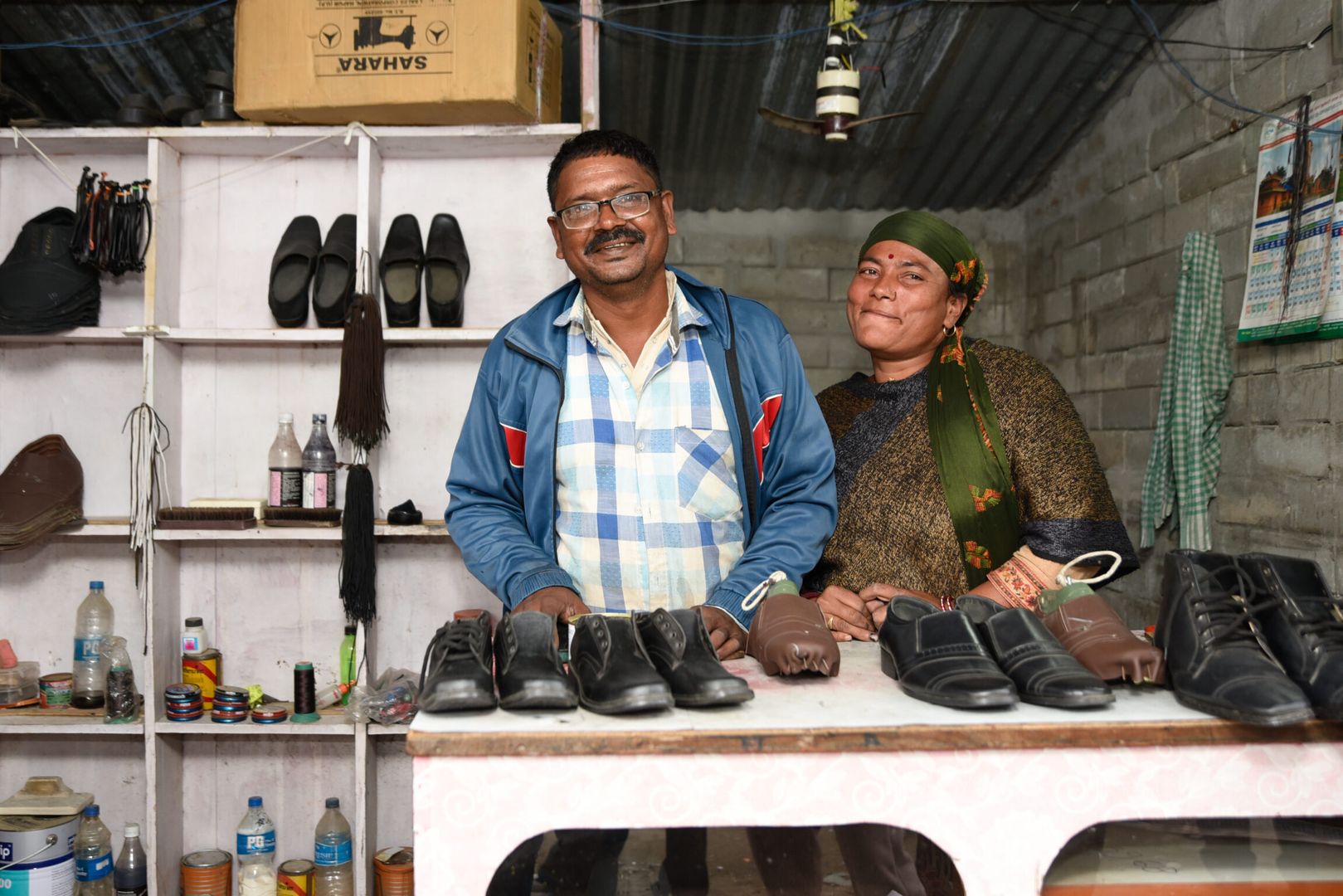I samarbejde med vores partnerorganisation NNSWA fik Sita og Resham materialer, værktøj og undervisning i at starte et skomagerværksted. Og deres slidstærke kvalitetssko fik hurtigt et godt ry i lokalområdet. Folk begyndte at strømme til Sita og Reshams butik for at få repareret deres sko.