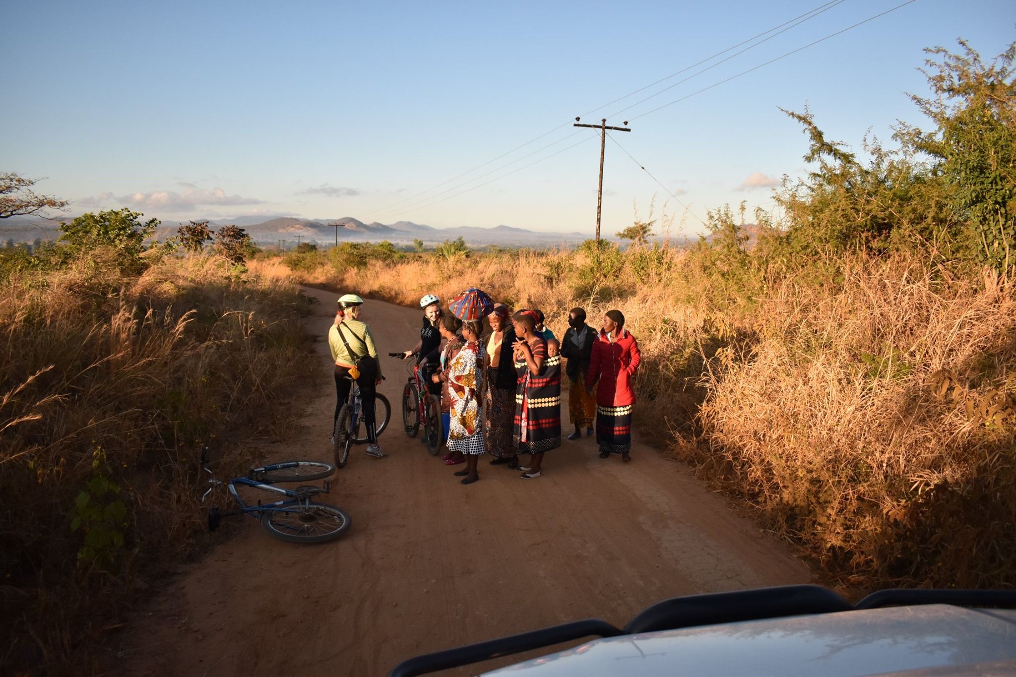 Mit navn er Emil, og jeg er afsted med Silkeborg Højskole på en frivilligrejse, gennem Folkekirkens Nødhjælp . Jeg har lige cyklet 26 km på en hullet hovedvej, og 8 på en muddervej. Det er regnsæson, og det kan man godt se på vores tøj. Sportstrøjen sidder tæt, og på ryggen er der mudder fra de mountainbikecykler der skal til for at komme gennem Malawis vejsystem.