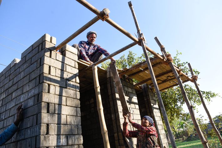 I Nepal giver klimaforandringerne flere oversvømmelser og jordskred. Derfor er det vigtigt, at befolkningen bor i slidstærke og robuste huse. På landet bor mange familier i skrøbelige lerhuse, men med et murstenshus er en familie mere sikker, når katastrofen rammer. Det kalder vi klimasikring.
