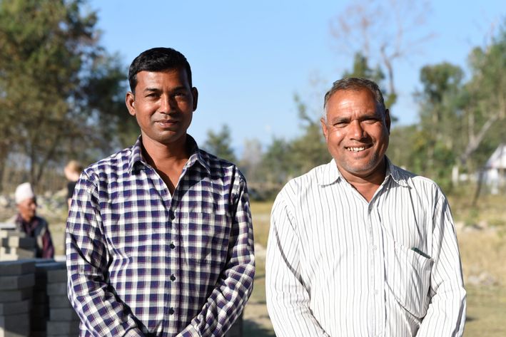 Shankar Sunar (th.) og Prem Bahadur leder en virksomhed, der producerer klimamursten. Murstenene bliver solgt på markedet, og det giver en fast indkomst til 5-6 personer ad gangen i den lille landsby i det vestlige Nepal, hvor der i alt bor ca. 18 familier.